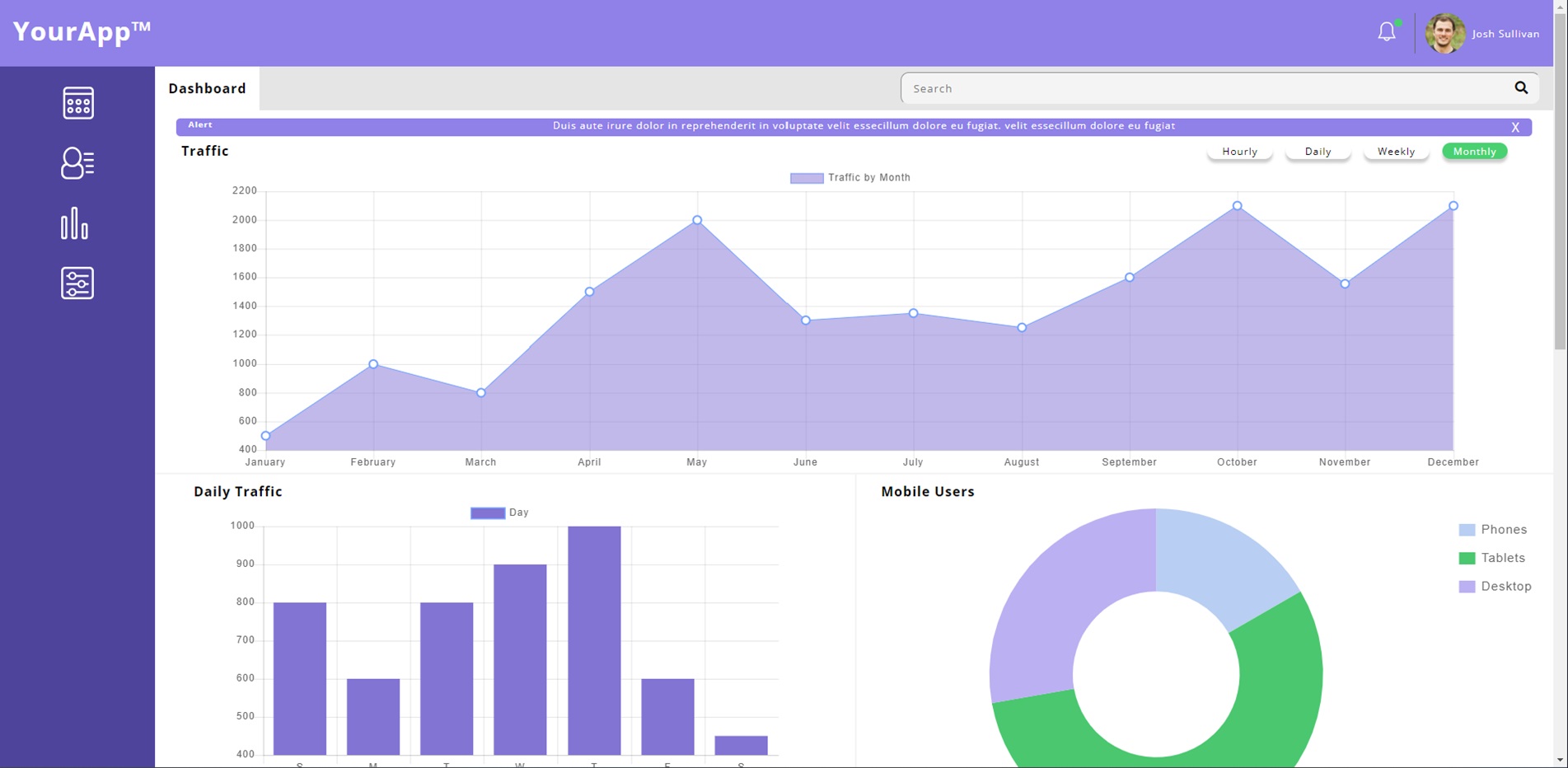 An interactive dashboard for a web application using advanced web techniques including SVG graphics and JavaScript programming.